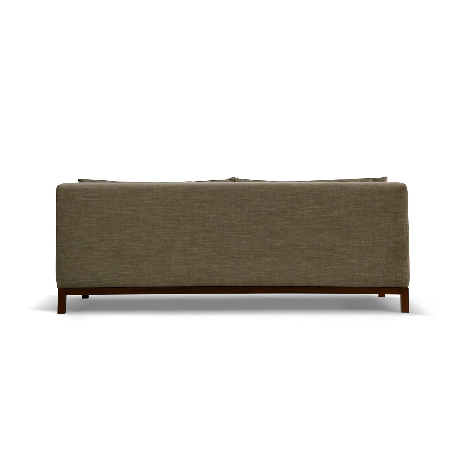 The Brooklyn Sofa is available in a two-seater or three-seater variant, both with two loose cushions each. These cushions are filled with standard poly fibre. The internal framework of the sofa is made with kiln-dried solid teak wood, while the visible base beneath its upholstered body is handcrafted using Burma teak. The seat is made of 32 density polyurethane foam, resting on Italian elastic bands. Personalise your Brooklyn Sofa by choosing from a variety of fabric and polish options to suit your interiors.