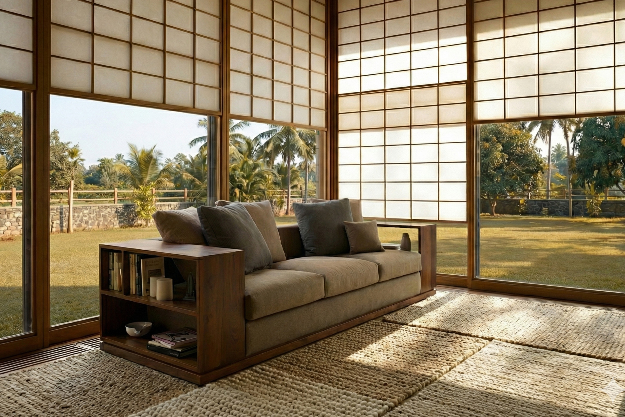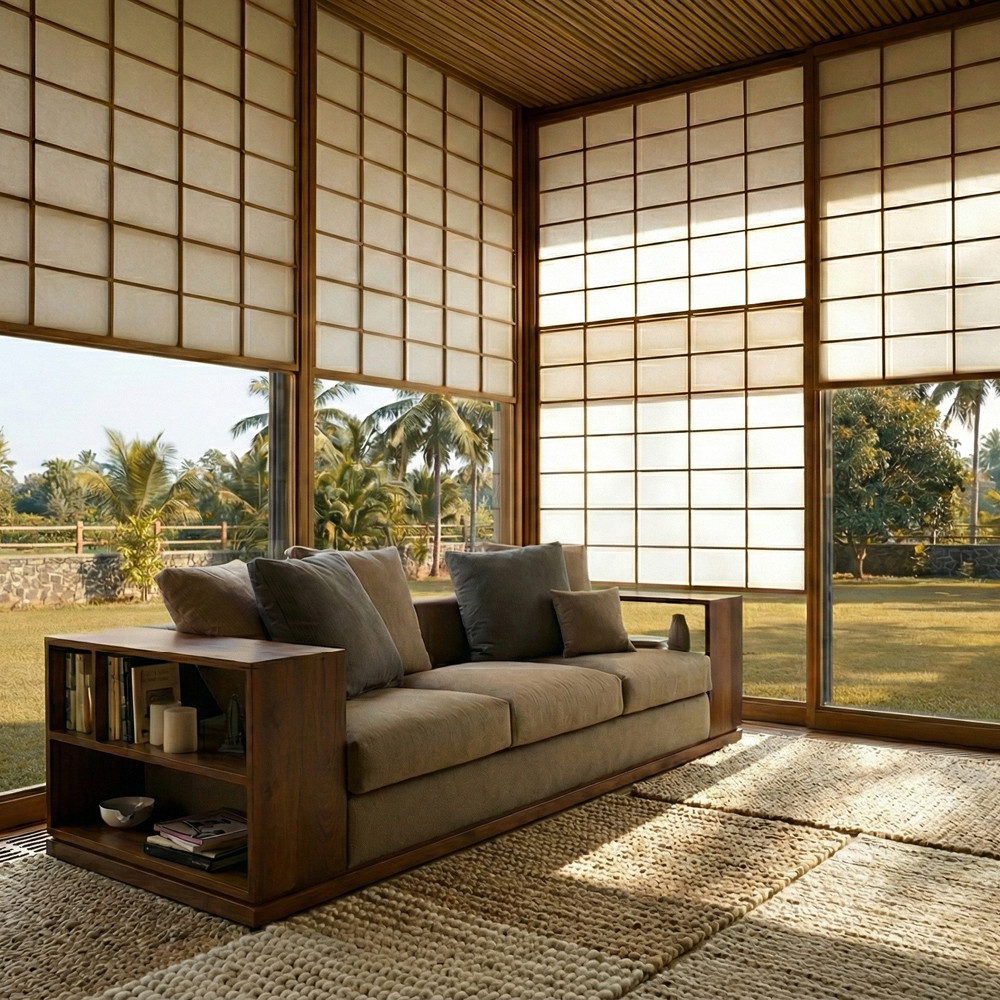The Capri Sofa has a commanding presence, that is punctuated by its Burma teak wood platform base. Wide wooden arms offer multiple advantages — they double up as bookshelves or additional storage on either side, and are ideal for placing your laptop or cuppa; functioning much like narrow side tables. Not your ‘typical’ sofa, this contemporary design is perfect for a modern home.