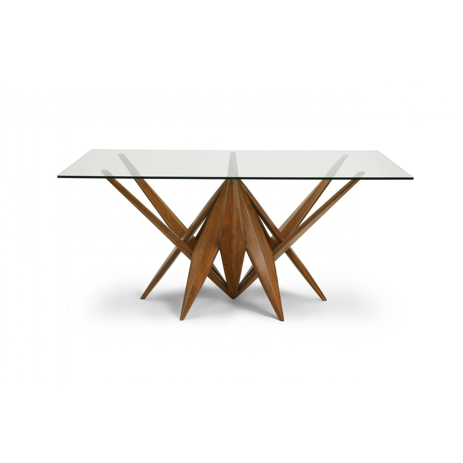 Made using solid Burma teak wood and topped with 12 mm glass, the Lotus Dining Table is available with a rectangular, round, or square top. This exquisite piece is also available as a centre table.