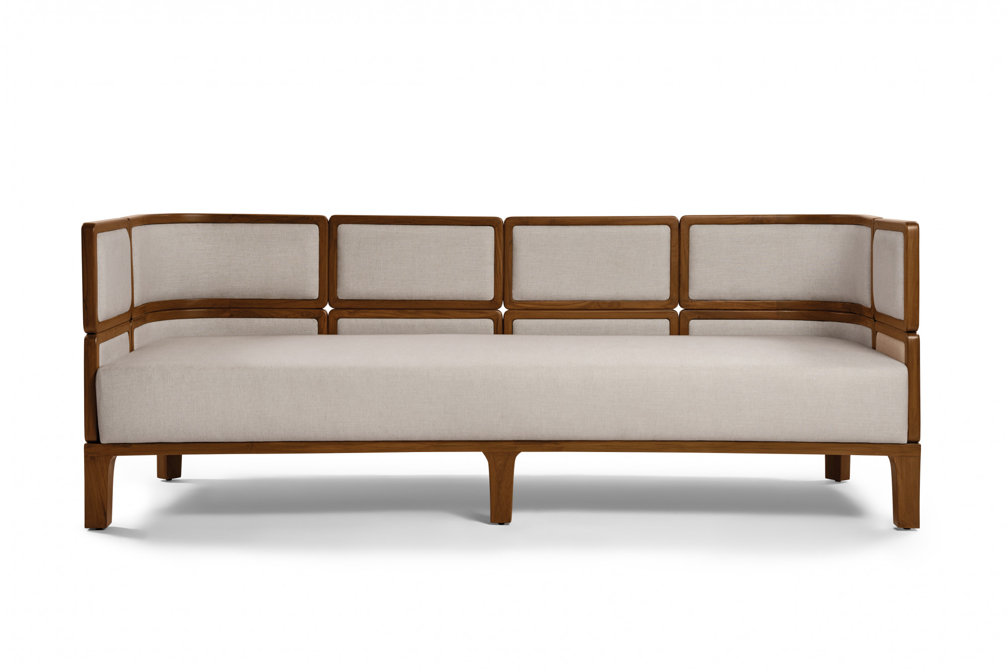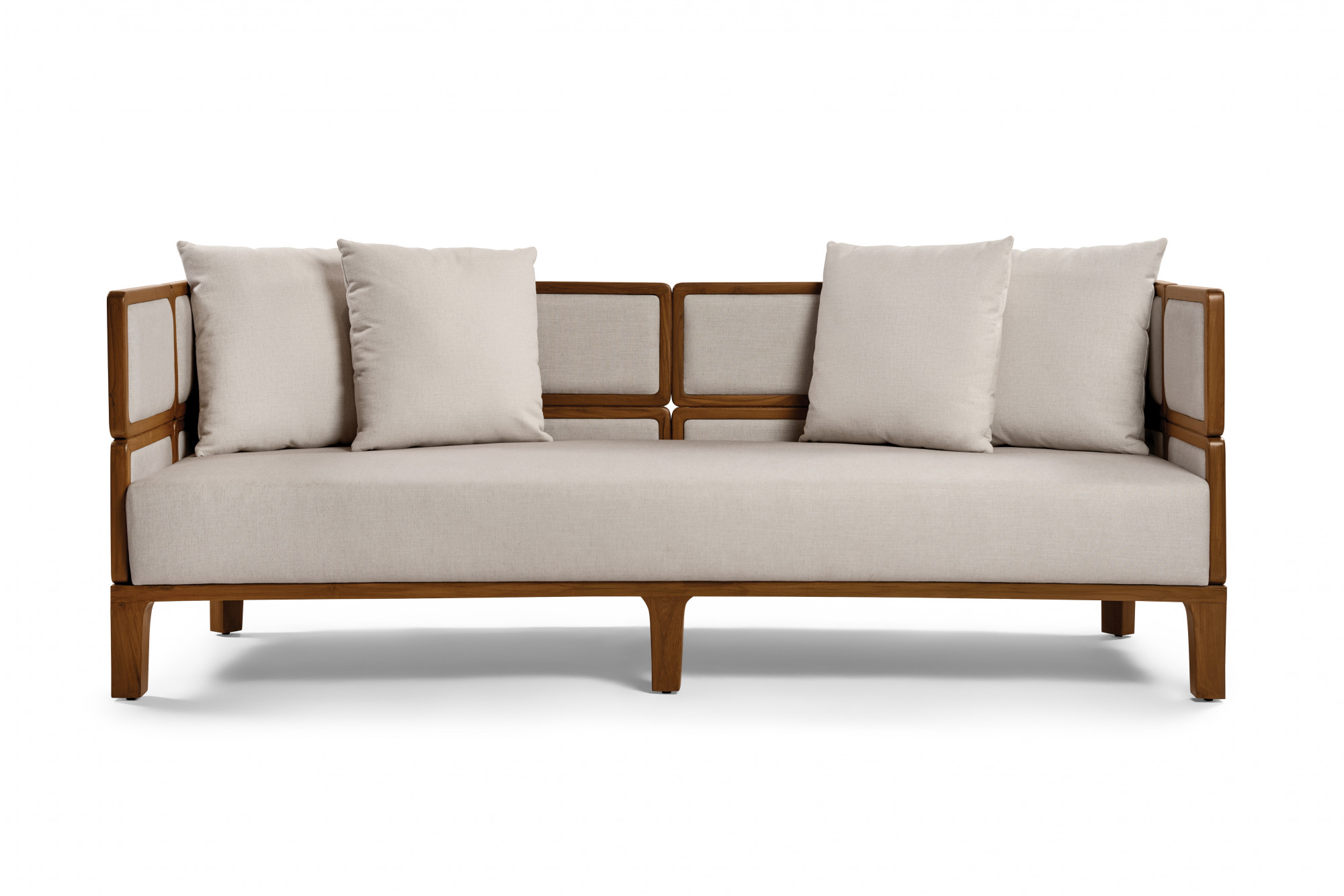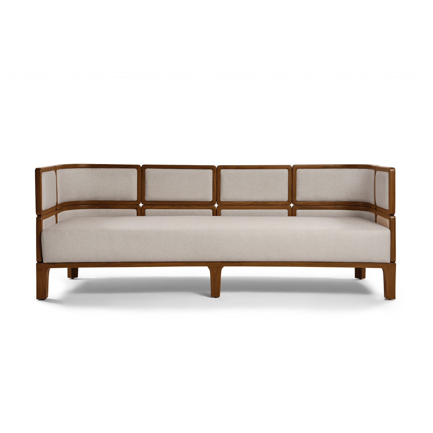 The Ubud Sofa features a solid Burma teak wood frame and legs, accented by handwoven cane. The seat is made of polyurethane foam, resting on Italian elastic bands. Available in four sizes, with a varying number of matching polyfill cushions, the Ubud Sofa can be upholstered and polished to complement your interiors.